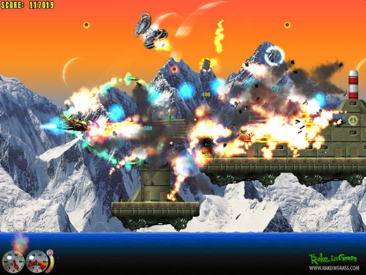 Нестандартное расположение игрового пространства создает особые связи между наземными и воздушными объектами: к примеру, сбитый корабль может врезаться в строение на земле и уничтожить его; но также игрок может выстрелить в особо взрывчатый наземный объект, который может уничтожить летящий рядом корабль, а иногда и корабль игрока.
