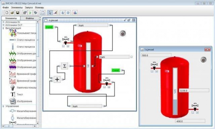 JMCAD Программный комплекс, предназначенный для анализа динамики и проектирования самых разнообразных систем и устройств. Удобный редактор структурных схем, обширная библиотека типовых блоков и встроенный язык программирования позволяют реализовывать модели практически любой степени сложности, обеспечивая при этом наглядность их представления. Программный комплекс JMCAD применяется для проектирования систем автоматического управления, следящих приводов и роботов-манипуляторов, тепловых энергетических установок, а также для решения нестационарных краевых задач.