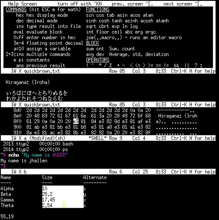 JOE Консольный текстовый редактор, ориентированный на управление с помощью «горячих клавиш».