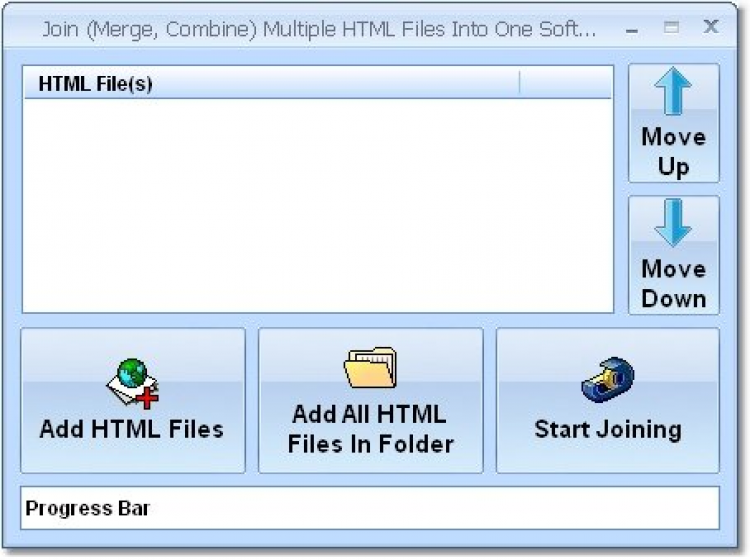 Чтобы начать использовать Join (Merge, Combine) Multiple HTML Files Into One, просто нажмите на кнопку "Скачать" в верхней части этой страницы. Процесс установки прост и не требует специальных навыков. Следуйте инструкциям установщика, и через несколько минут программа будет готова к работе.