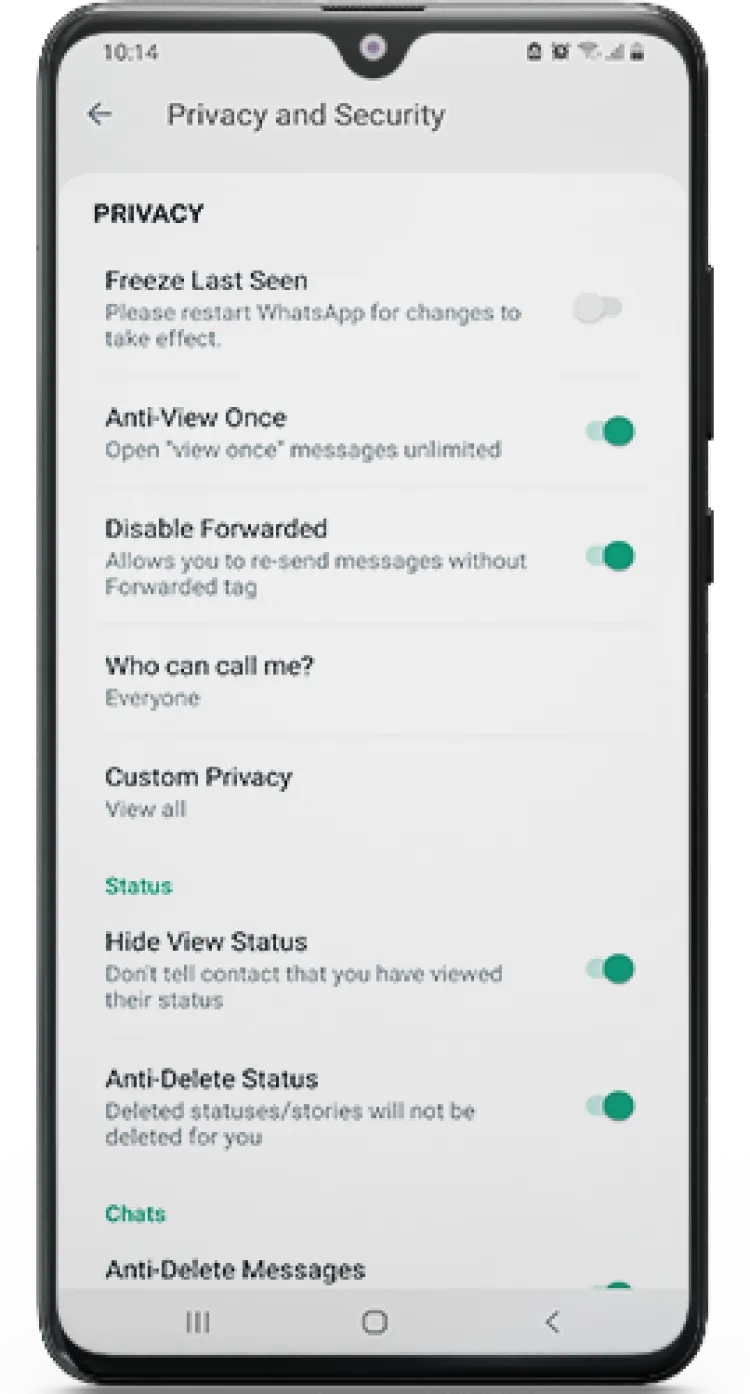 По сравнению с оригинальным WhatsApp, этот мод, созданный Jimtechs, намного более функционален и подходит для обмена файлами и положительными эмоциями. Прежде всего, важно отметить, что этот мод содержит все функции оригинального приложения. Это означает, что вы можете поддерживать связь со своими друзьями и семьей, не приглашая всех в новое приложение или не регистрируя еще одну учетную запись. Приложение содержит инструмент Anti-ban, который снижает риск быть пойманным с использованием мода. К сожалению, определенный риск быть забаненным все еще существует, поэтому рекомендуется использовать мод с осторожностью и не спамить слишком много.