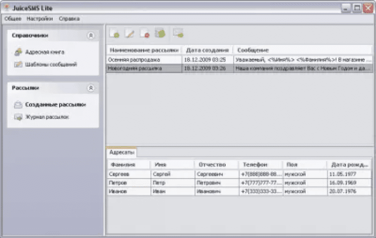 JuiceSMS Lite - это программа для массовых рассылок СМС сообщений через мобильный телефон.