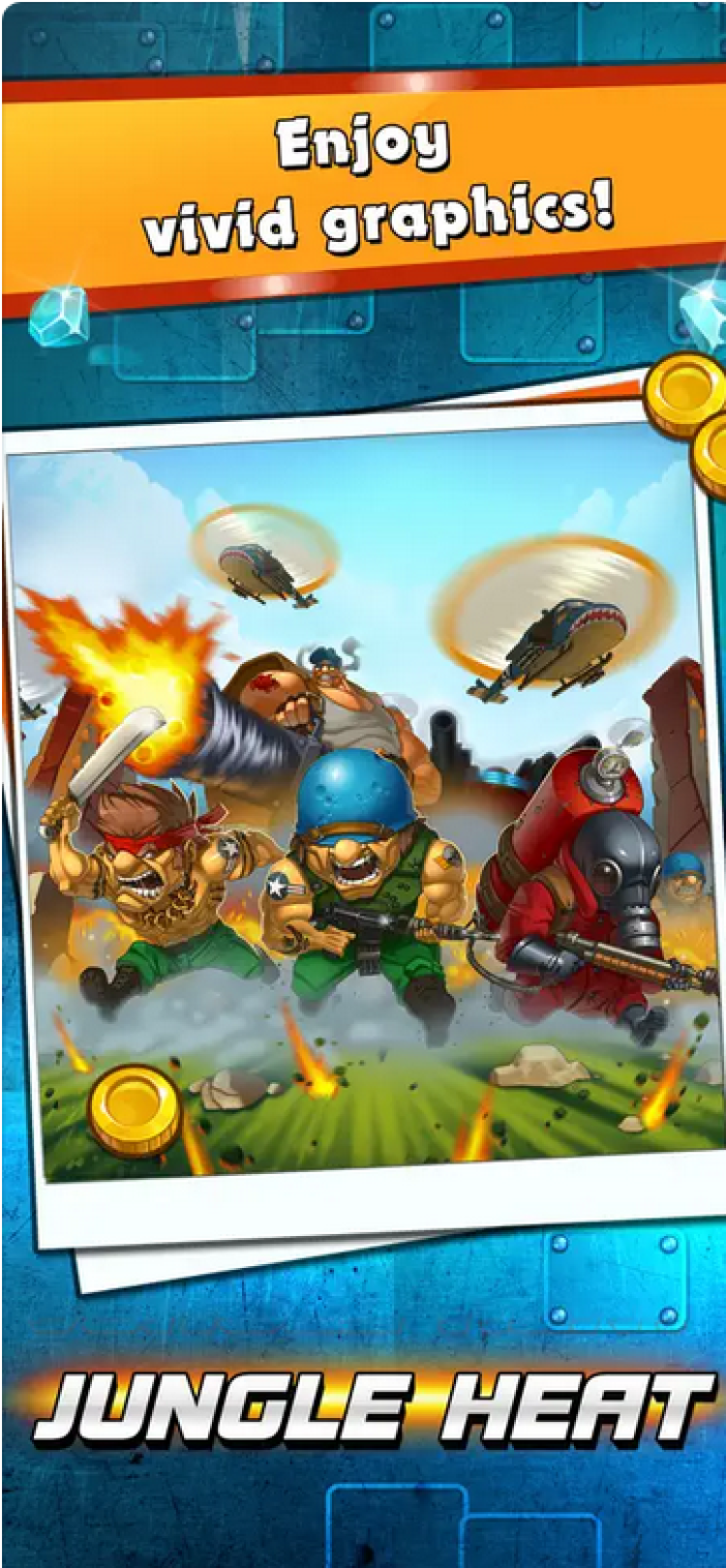 Бесплатная кросс-платформенная игра, в которой вам предстоит освободить природные богатства из лап мародеров и присвоить их себе. Собирайте армию уникальных героев, стройте базу и укрепления, атакуйте других игроков, участвуйте в турнирах, а так же многое другое. Игра Jungle Heat обладает красивой мультяшной графикой, прикольным музыкальным сопровождением, а так же предоставит вам море веселья.