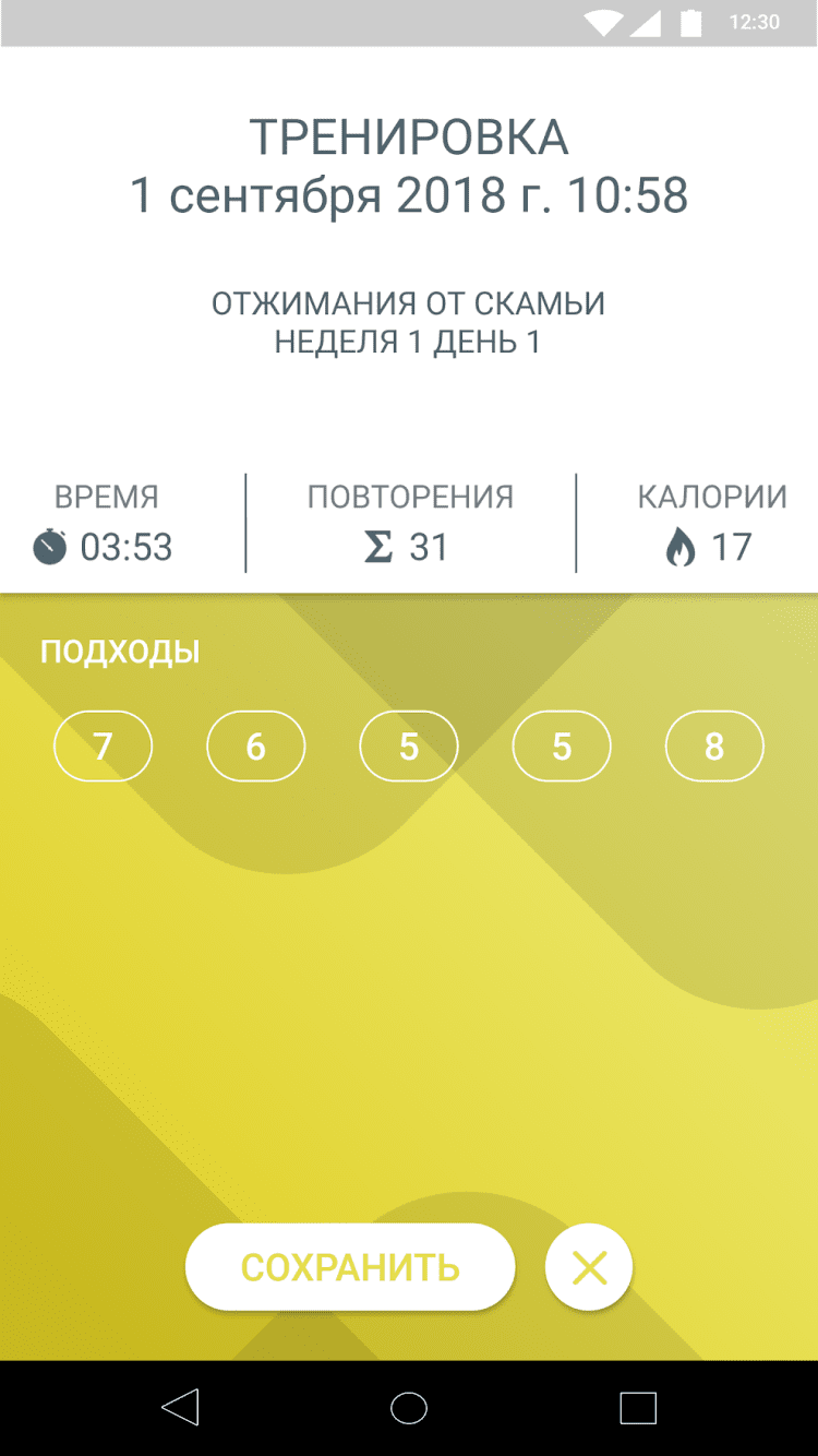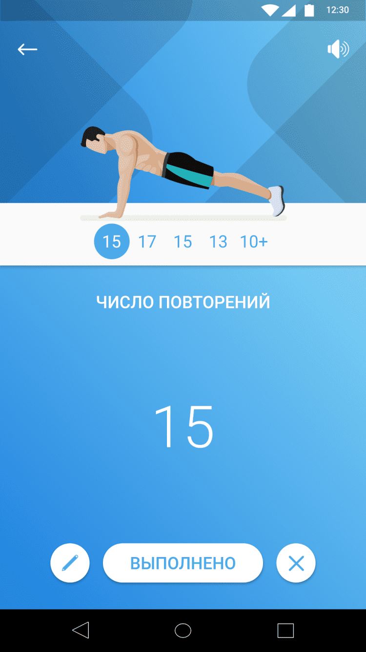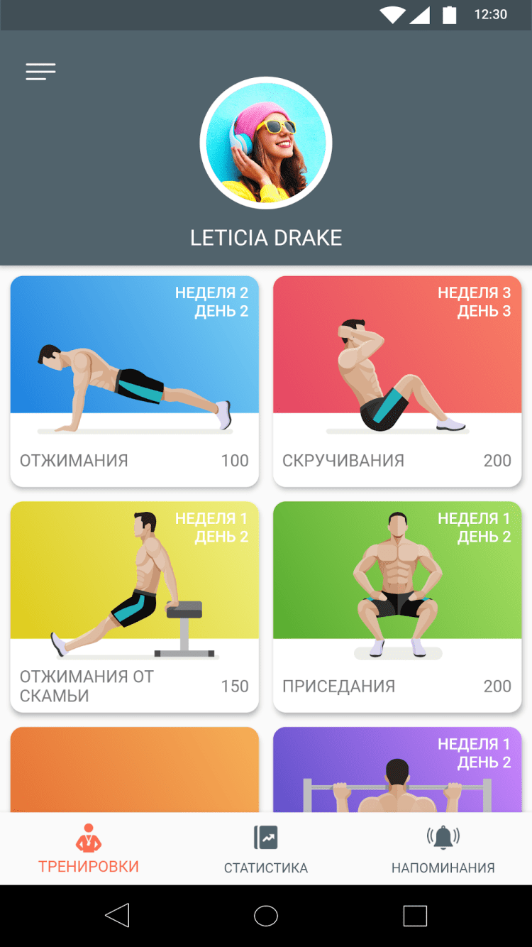 - статистика по выполненным упражнениям;