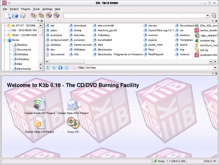 K3b Программа записи дисков CD, DVD и Blu-ray для KDE SC. Официально не входит ни в один из компонентов KDE и выпускается независимо от него, однако для своей работы использует kdelibs. Как заявляют разработчики, «K3b оптимизирована для KDE».