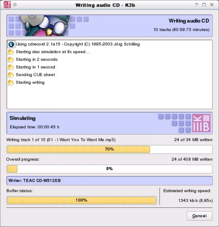 Есть возможность перед записью переименовать аудиофайлы в проекте, используя информацию из их тегов. Тесно интегрирован с аудиоплеером Amarok и позволяет записывать прямо из него Audio CD, используя базу тегов.