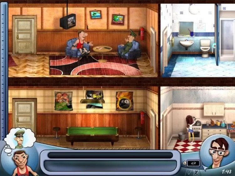 Еще одним важным тактическим моментом является скрытность. Следите за передвижениями вашего сожителя и старайтесь не встретиться с ним в узком коридоре. Такое столкновение может кончиться не в вашу пользу, что в условиях обострившегося конфликта совершенно неприемлемо. Чтобы ненавистный сосед прочувствовал ваш праведный гнев во всей полноте, старайтесь подстраивать ловушки так, чтобы они сработали одна за другой. Череда пакостей способна кого угодно довести до белого каления! В этой игре вас ждет отличная графика и несколько захватывающих уровней, пронизанных студенческим юмором. Если вы хотите освежить в памяти годы боевой славы или наоборот узнать, что значит быть студентом, эта аркада вам обязательно подойдет.