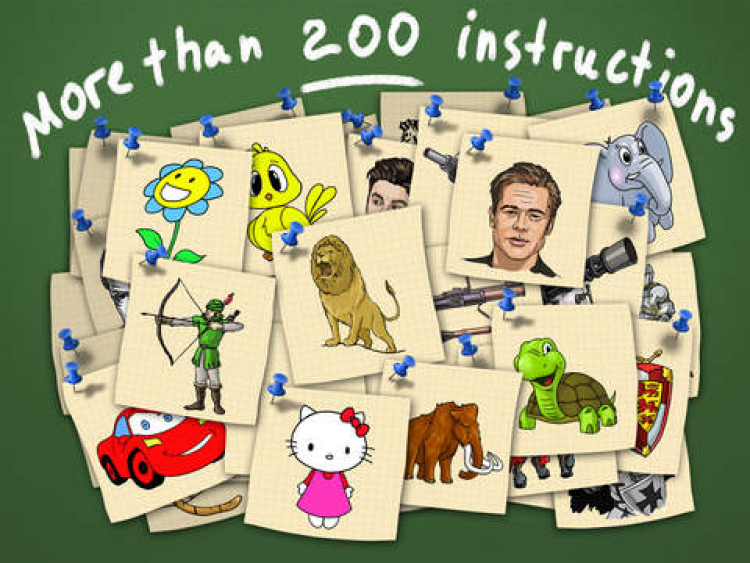 Каждый рисунок разделен на несколько шагов или этапов рисования. Повторяя линии шаг за шагом, которые вы видите на экране, в конце вы получите завершенный рисунок. Также вы можете нарисовать свой собственный рисунок прямо на экране вашего устройства.