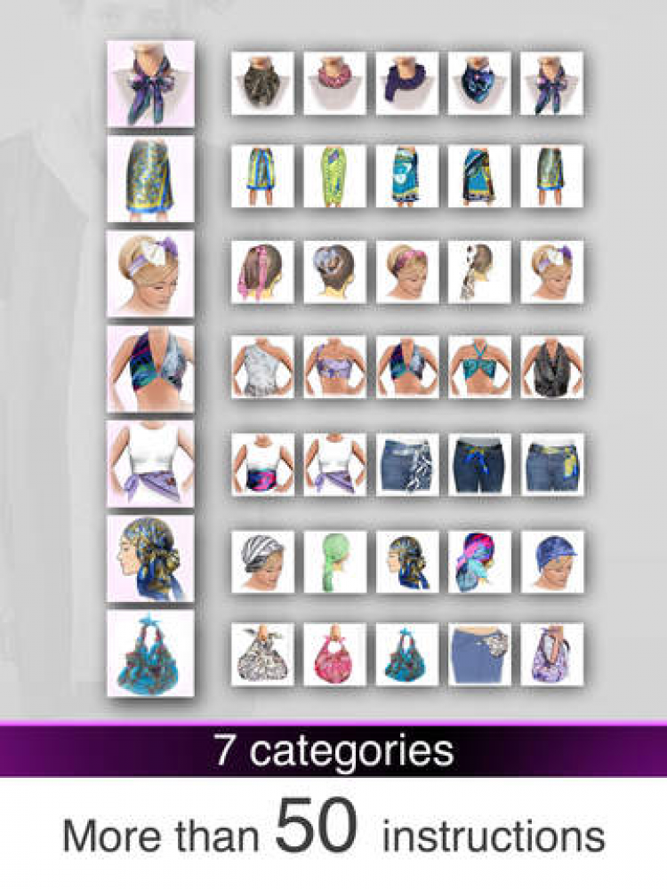 - небольшие описания шарфов подскажут, с какой одеждой их следует носить, например, какой узел можно носить с повседневной одеждой, а какой подойдет для делового стиля.