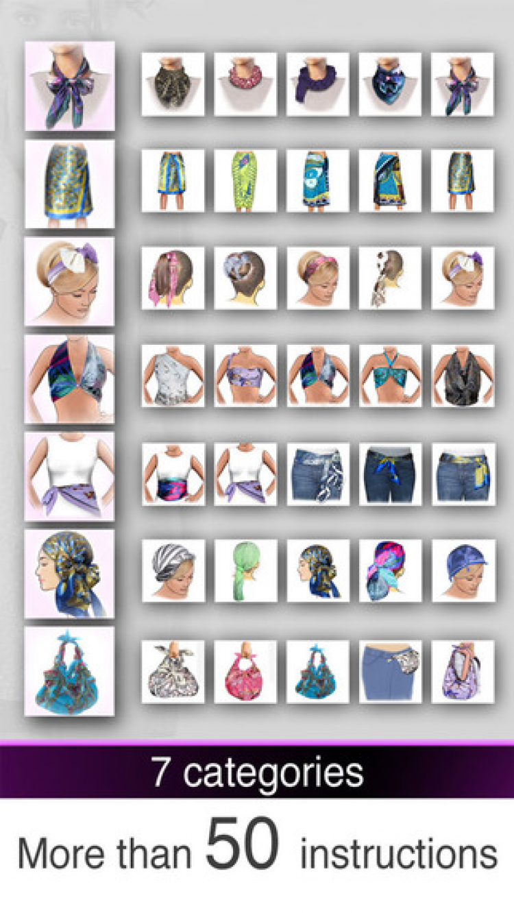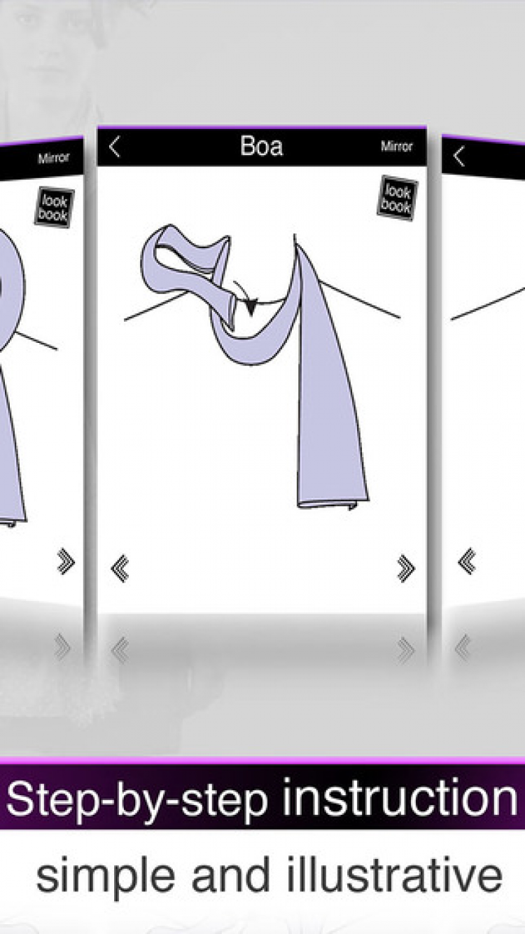 Как завязать шарф Это приложение представляет собой руководство по завязыванию шарфов.