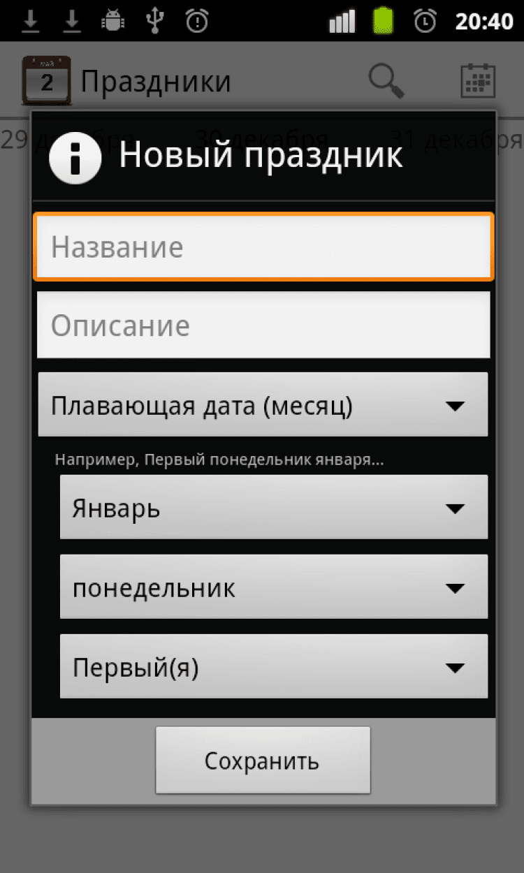 Скачать Календарь праздников