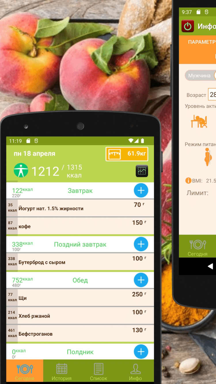 Воспользуйтесь встроенным калькулятором идеального индекса массы вашего тела, проанализируйте свой рацион и сформируйте наиболее подходящую для вас диету. Находите друзей по диете и следите за своими успехами вместе.