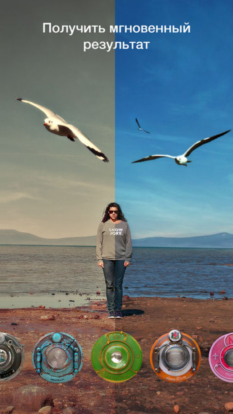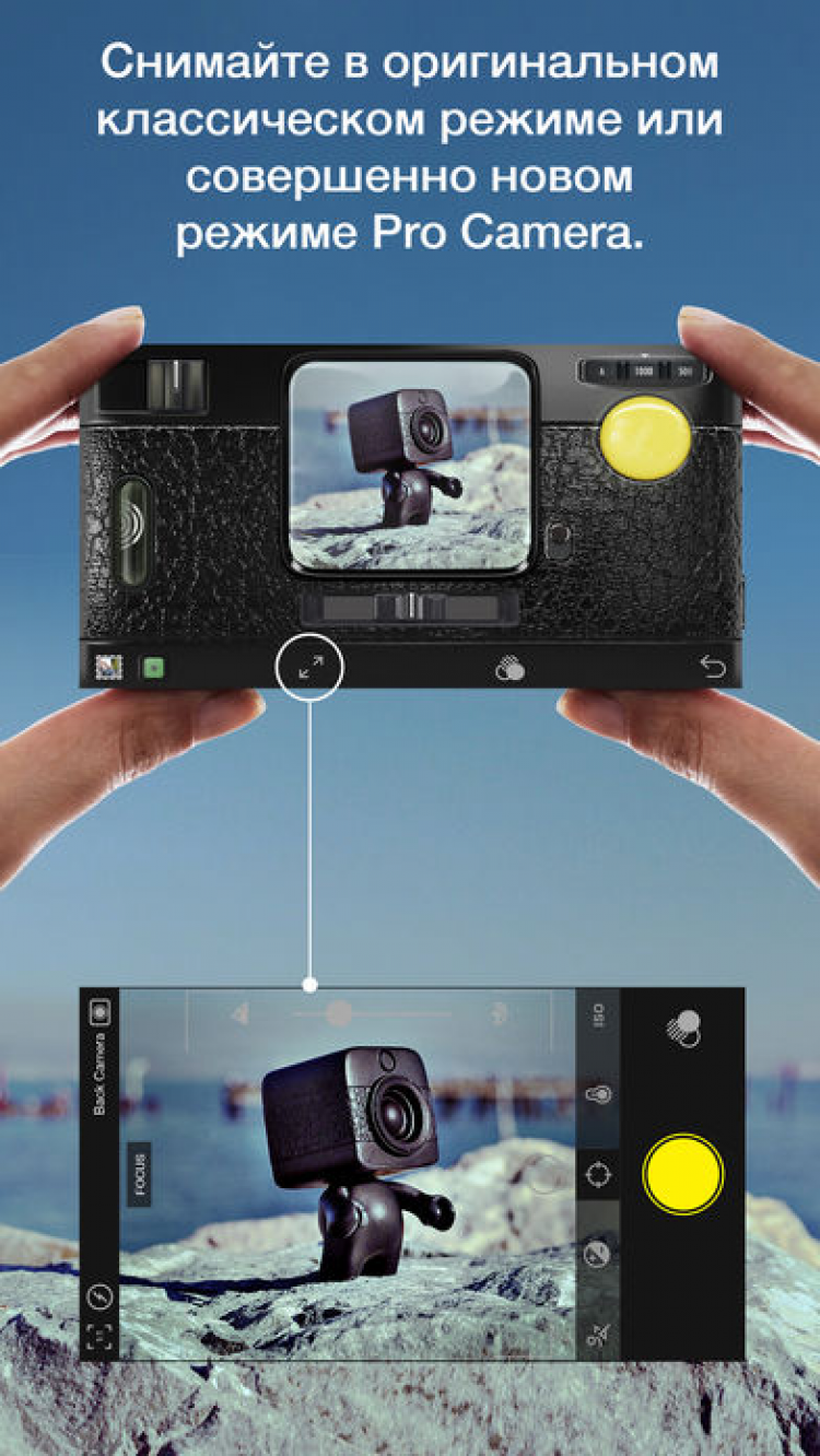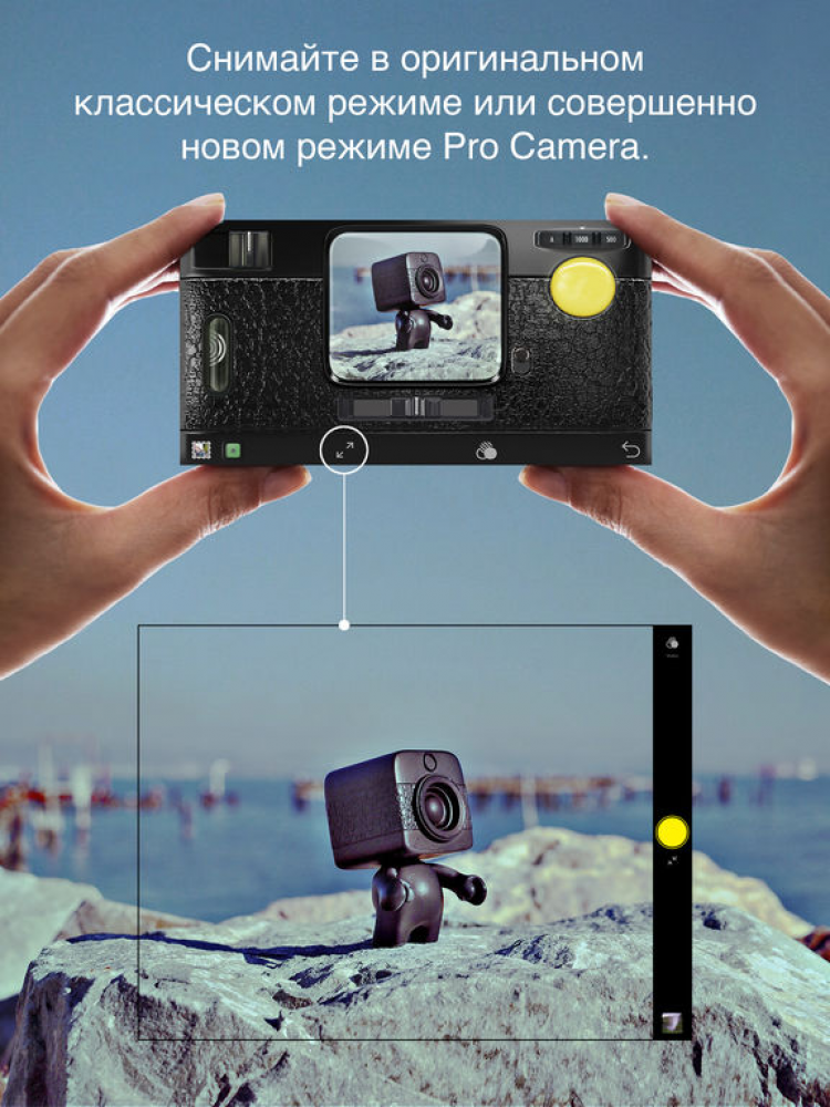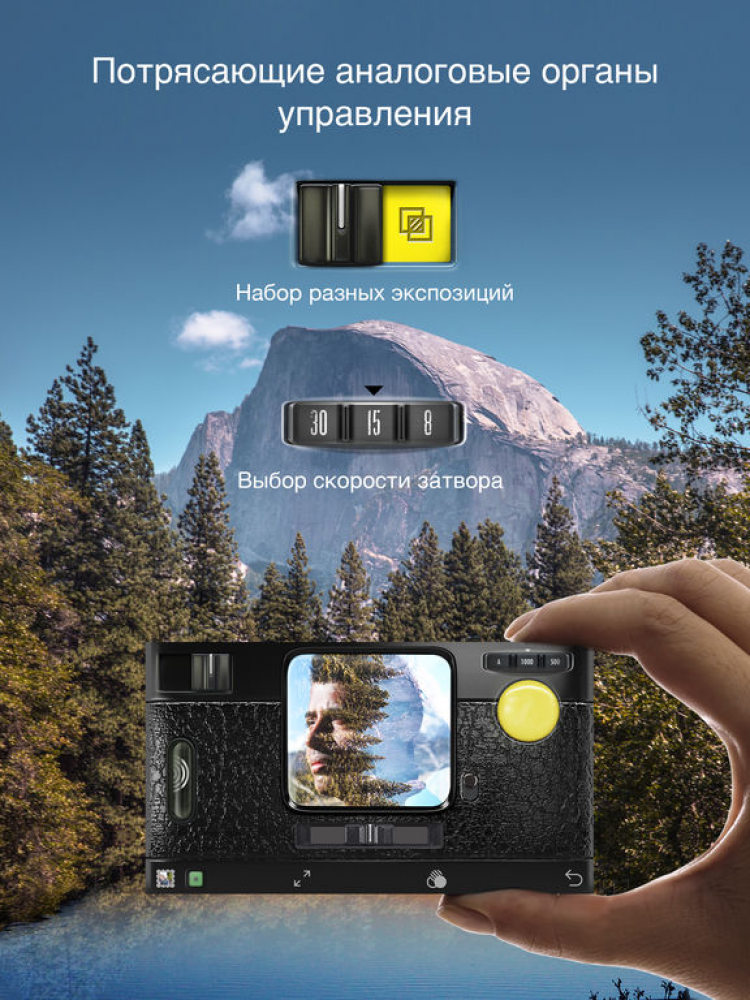 Камера Hipstamatic Цифровое фото совсем не похоже на аналоговое. Данная программа переносит вас в мир фото на пленочных "камерах-мыльницах" из прошлого. Тот же вид, стиль, особая непредсказуемая красота и радость, которую вы испытаете от этих снимков. Это приложение сохраняет индивидуальность и свежесть фото, снятых на старых камерах, но добавляет новые возможности - смену объектива, пленки, режима вспышки - и все это простым нажатием кнопки.