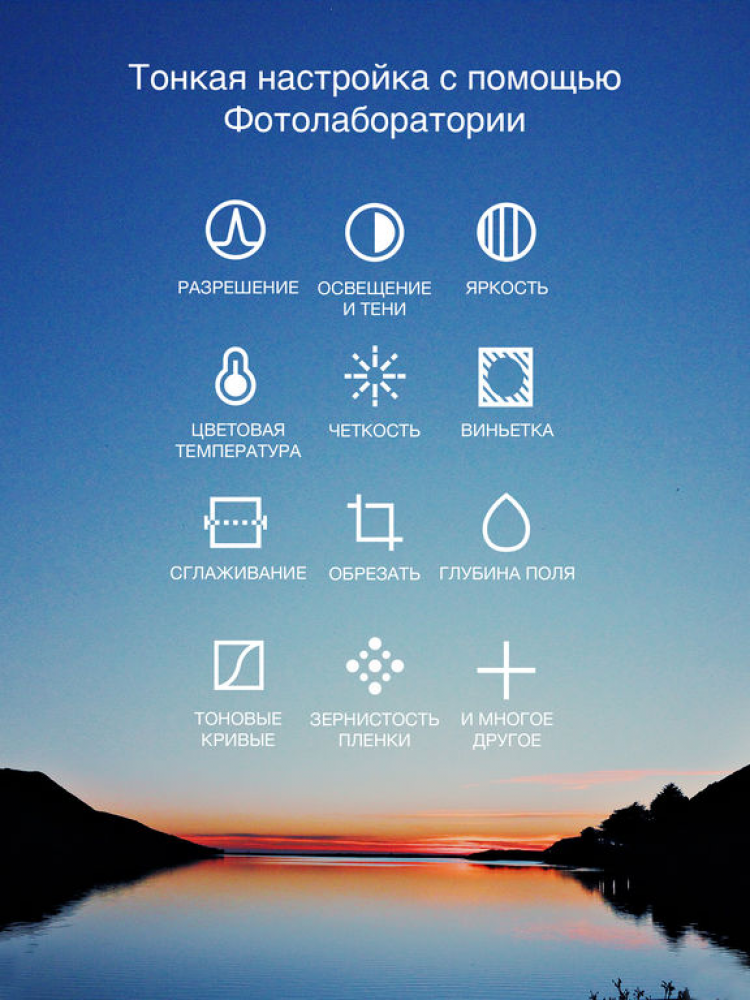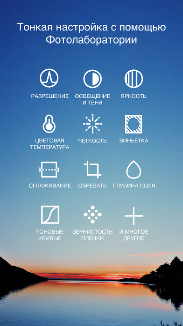 - Возможность загрузки понравившихся снимков в acebook, Twitter, Instagram, Flickr и Tumblr;