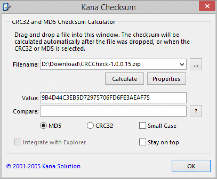Kana Checksum - это простая в использовании утилита, предназначенная для расчета контрольной суммы файла. Она также позволяет сравнить полученную сумму с оригинальным значением, чтобы проверить целостность скачанного или полученного файла.