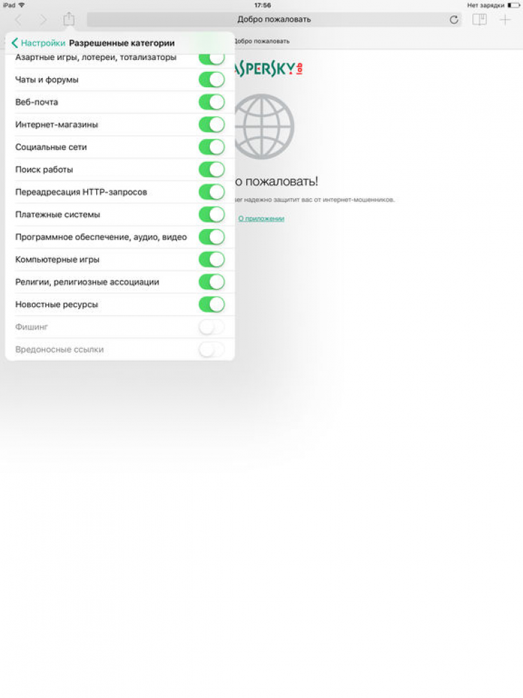 Бесплатный и безопасный браузер для iOS устройств от Лаборатории Касперского, который автоматически блокирует переходы на зараженные и мошеннические сайты и позволяет фильтровать нежелательные категории сайтов. Для этого, Kaspersky Safe Browser определяет категорию содержимого сайта, сравнивает с заданными пользователем нежелательными категориями (порнография, насилие и проч.), распознает вредоносные и мошеннические сайты, а затем блокирует доступ к ним.
