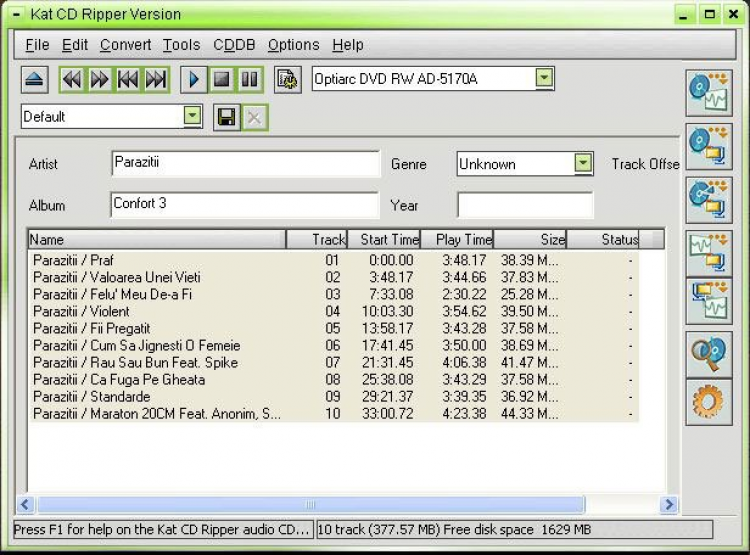 Kat CD Ripper - это очень простая в использовании утилита, которая поможет Вам в риппинге аудио-дисков. Она позволяет пользователю извлекать музыку с дисков в формат WAV, MP3 или OGG.