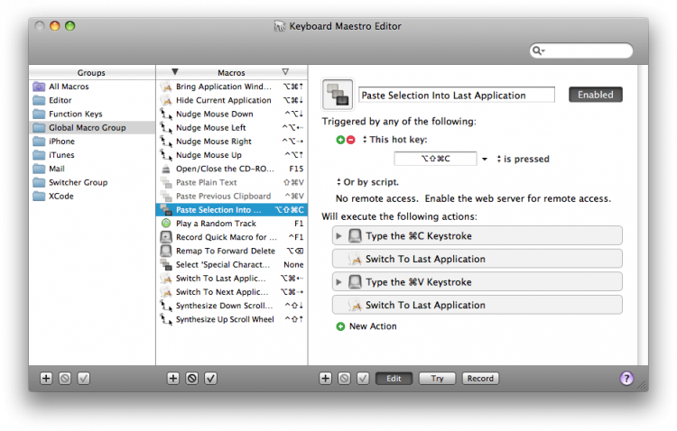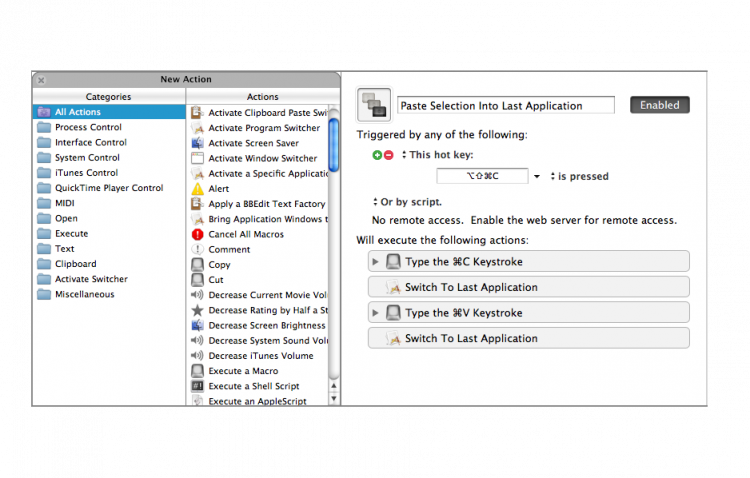 Keyboard Maestro Программа для настройки горячих клавиш, которая позволит пользователям выполнять множество различных задач нажатием клавиш. Keyboard Maestro включает в себя Program Switcher - программу, позволяющую запускать, переключать и завершать приложения одним нажатием.