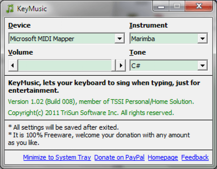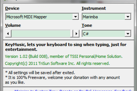 KeyMusic - это утилита, которая превратит любую клавиатуру в музыкальный инструмент. После запуска KeyMusic, каждое нажатие будет сопровождаться звуком выбранного музыкального инструмента.