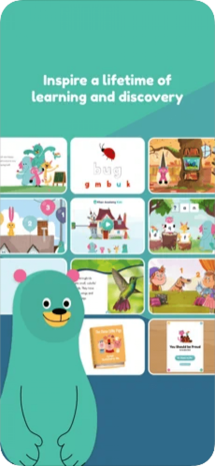 Khan Academy Kids — это программа от Академии Хана, предназначенная для детей. Здесь вы найдёте огромное количество обучающих материалов, песен, игр и интересны задачек, которые помогут получить необходимые знания, развить креативность и многое другое.