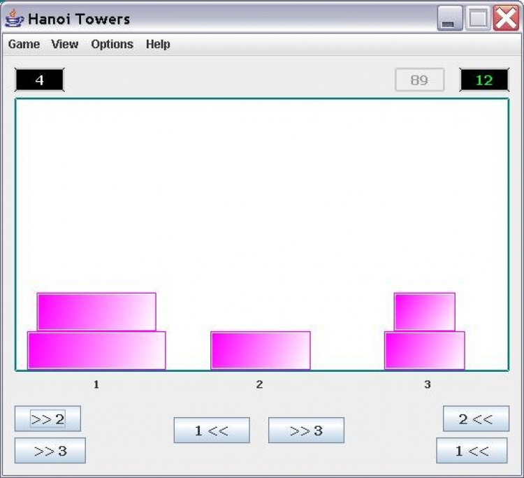 Ханойские Башни - это простая логическая игра, имплементация известной задачи о Ханойских башнях. Цель игры - передвинуть кирпичики из левой позиции в правую, используя среднюю в качестве промежуточной. Можно размещать меньший кирпичик на больший, но не наоборот. Игра полезна для тренировки логического мышления.