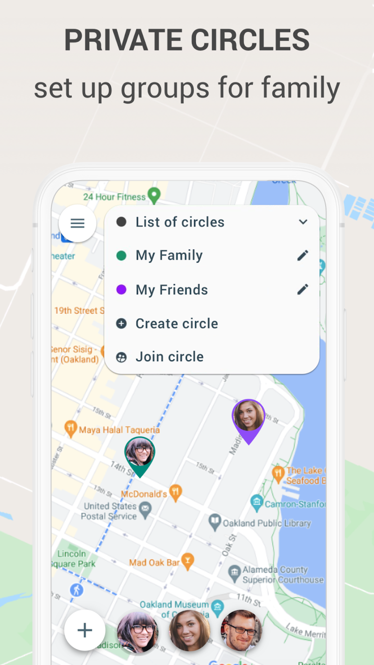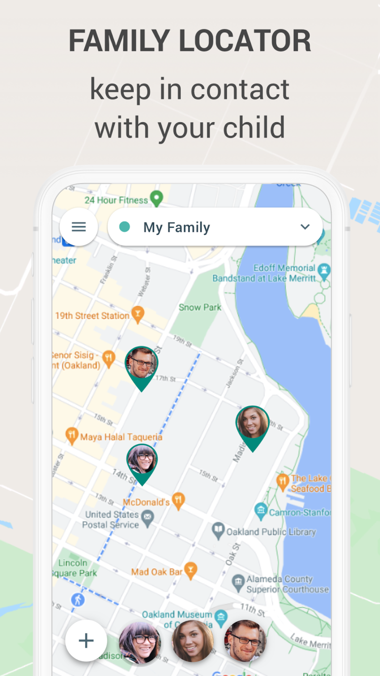 - отслеживание местоположения детей на приватной карте, видеть которую можете только вы и приглашенные вами пользователями;