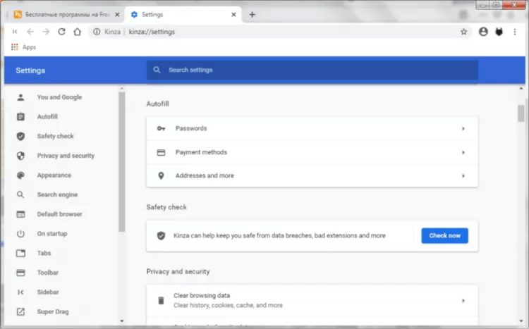 Kinza - это свободный веб-браузер с открытым исходным кодом, разработанный на Chromium, и доступный пользователям Windows 10, 8/8.1 и 7. В него добавлено новые функции, которые порадуют многих пользователей, и которых нет в других вариациях этого браузера.