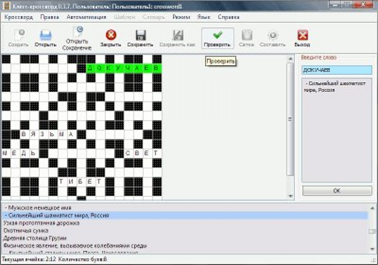 - Проверка правильности отгадывания кроссворда;