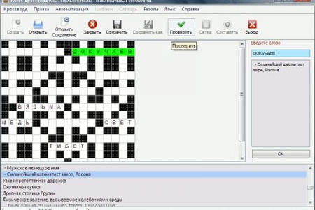 - Сохранение состояния неполностью отгаданного кроссворда;