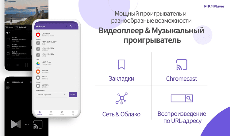 Также, KMPlayer позволяет организовывать ваши любимые видео в специальной папке для быстрого доступа и, благодаря поддержке облачных хранилищ, воспроизводить видео ролики не только из памяти вашего смартфона или планшета, но и с Google Drive.