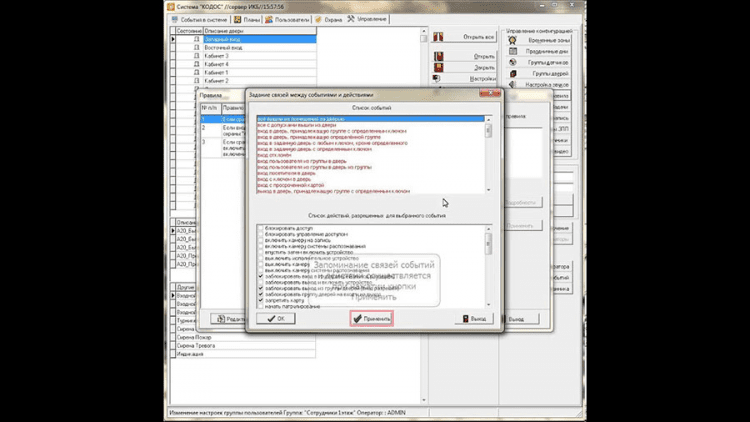- Управление правами доступа к просмотру видеоизображения;