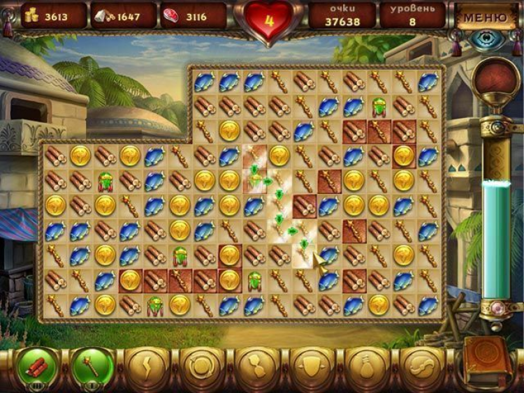 Основными ресурсами в этой игре являются деньги, провиант и строительные материалы. Здания нужно из чего-то строить, а рабочих необходимо обеспечивать едой и оплачивать их труд. Чем более величественные сооружения вы будете возводить, тем больше вам потребуется ресурсов. Мастерство управляющего заключается в умелом манипулировании с имеющимися товарами. Иногда такое жонглерство напоминает магические фокусы. В вашем распоряжении будет разделенное на квадраты игровое поле и разнообразные фишки. Выделяя на экране цепочки из трех и более элементов, вы будете получать определенное количество еды, денег или стройматериалов.