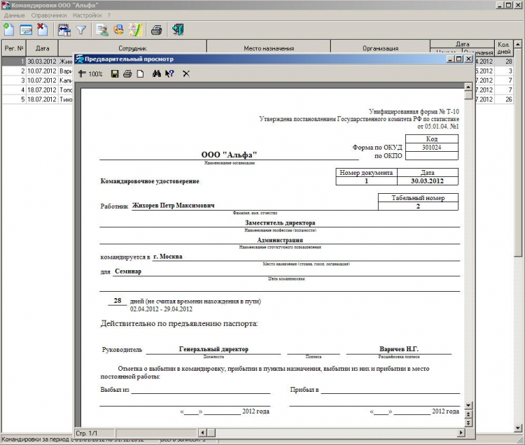 Командировки+ - это программа позволит быстро оформить и распечатать командировочное удостоверение и приказ на командировку. Ответственные могут вести регистрацию командировок по номерам в течении года.