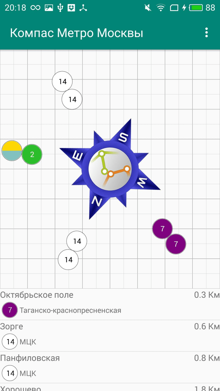 - Ждете, пока настроится GPS навигация и встроенный в смартфон компас, после чего ближайшие станции метро появятся на экране.
