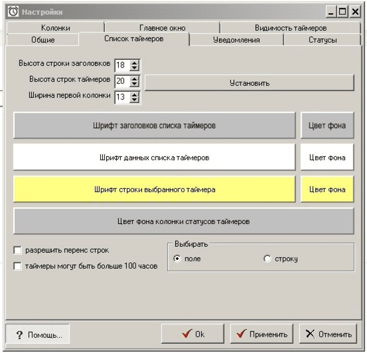 - произвольно менять расположение таймеров/событий в списке, менять высоту строк для выделения;