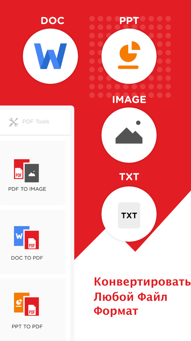 Наверняка, каждый сталкивался с ситуацией, когда необходимо было срочно отредактировать документ, а тот оказывался в формате PDF. Внесение изменений в такие файлы небезосновательно вызывает трудности у многих пользователей смартфонов. Благодаря этому приложению, вам более не придётся тратить время и силы на поиск информации о способах отредактировать PDF. Просто загрузите файл в приложение и преобразуйте его в формат Word, доступный для свободного редактирования в практически любом текстовом редакторе. Помимо формата Word, приложение позволяет выполнять ряд прочих преобразований: