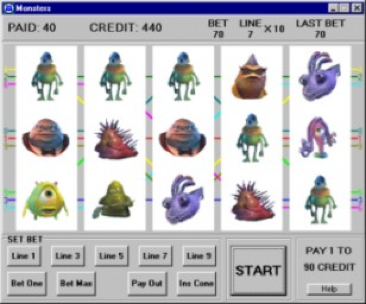 Корпорация монстров - это игра для отчаявшихся отхватить куш за свои кровные и желающих потешить душу на халяву. Внешний вид и интерфейс максимально приближен к типовому игральному автомату. Использованы морды из популярного мультика «Корпорация монстров» (пусть не серчают создатели на небольшой плагиат). Для создания эффекта настоящей игры «на деньги» учтен процент казино - 10 %. Состояние параметров игры сохраняется на всех этапах. Нажав на вкладке Info клавишу F1, получите доступ к статистике.