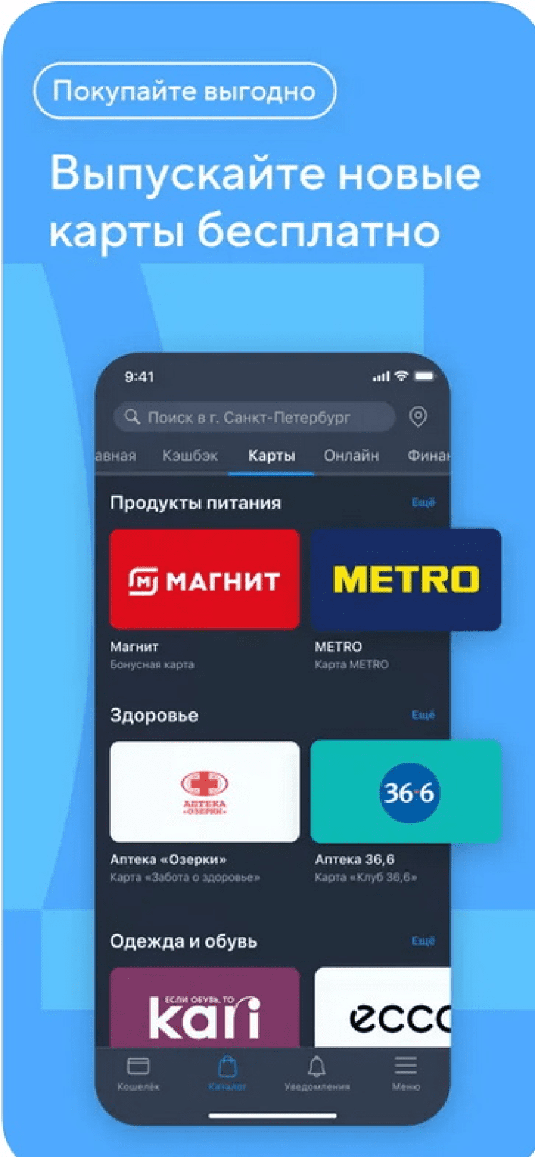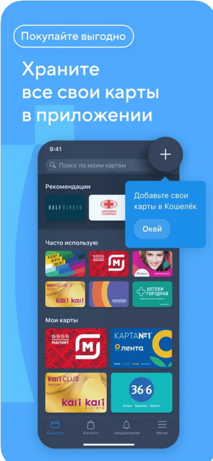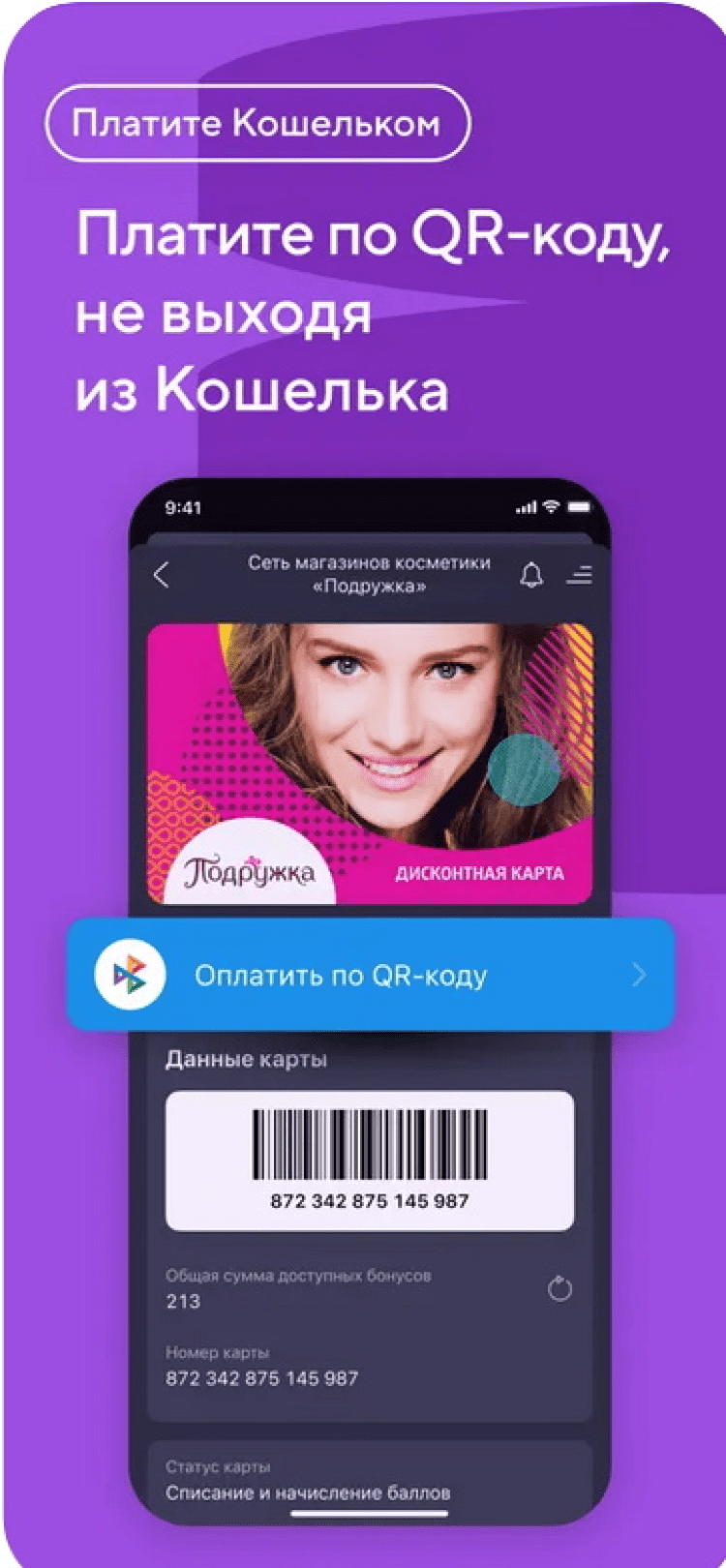 Это приложение предназначено для удобного хранения любых скидочных, бонусных и клубных карт. Просто перенесите на свой смартфон данные соответствующих карт и получайте скидки и прочие преимущества бонусных программ в тех или иных местах, предъявив электронную версию карты на экране своего смартфона. При этом, программа Кошелек поддерживает работу с картами таких сетей, как Спортмастер, Sela, Ostin, М.Видео, Иль де Ботэ, Nike, Samsung, Sony, re:Store, Streat beat, 585, Золотой, Мираторг, Окей, Улыбка Радуги, Рив Гош, Евразия, Ikea, InCity, Ecco, Связной клуб, Красный куб, Перекрёсток, Пятёрочка, Сolin's, Melon fashion club, Лента и многих других.