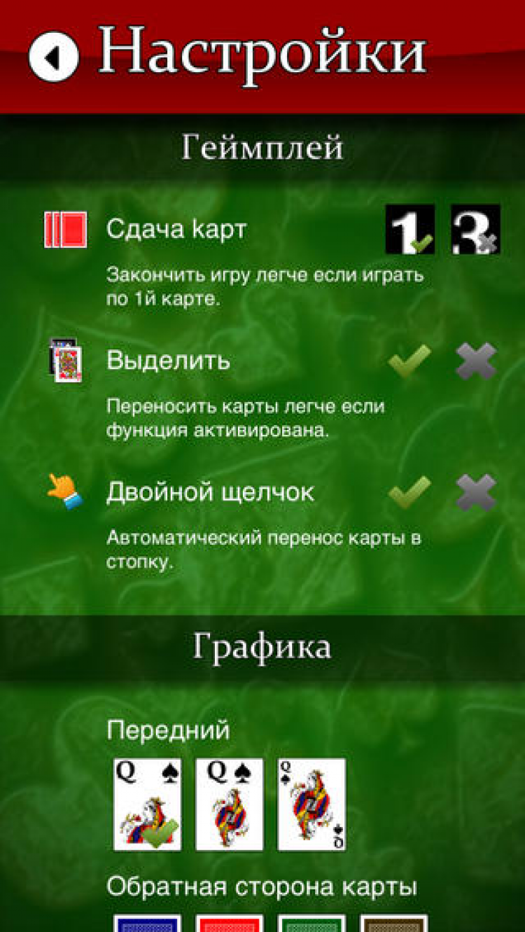 - Mожно выбрать - сдавать по 1 или 3 карты