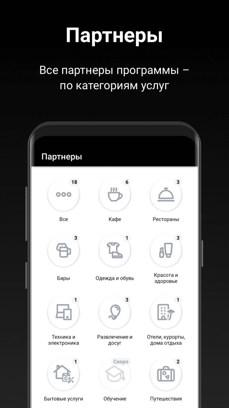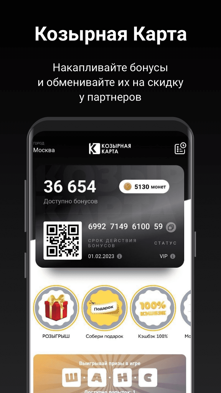 - встроенная электронная карта с QR-кодом для использования у партнеров;