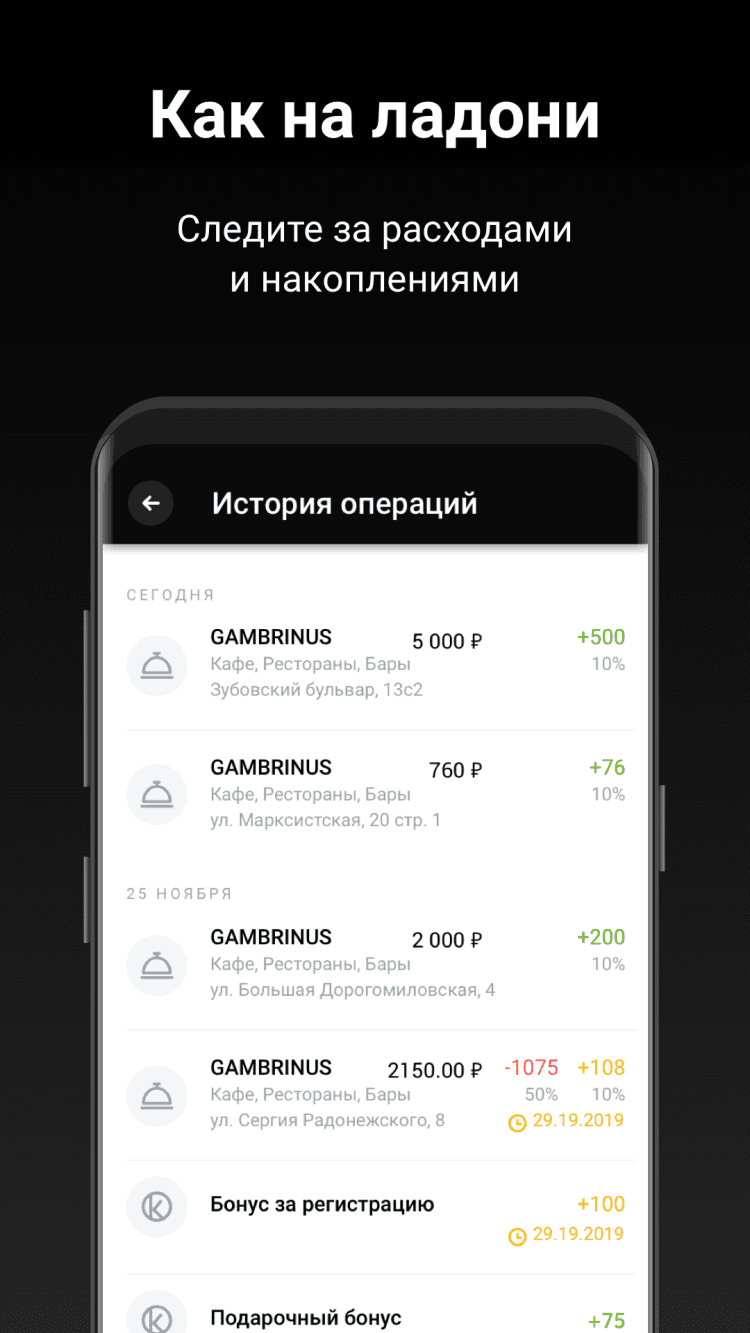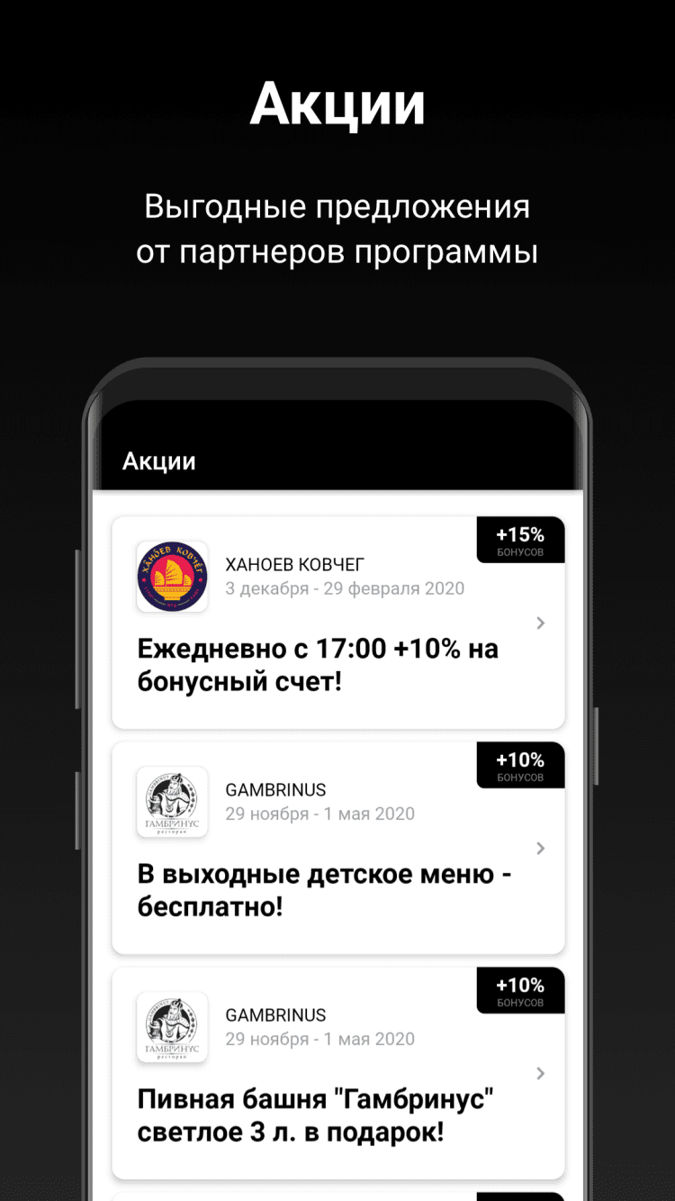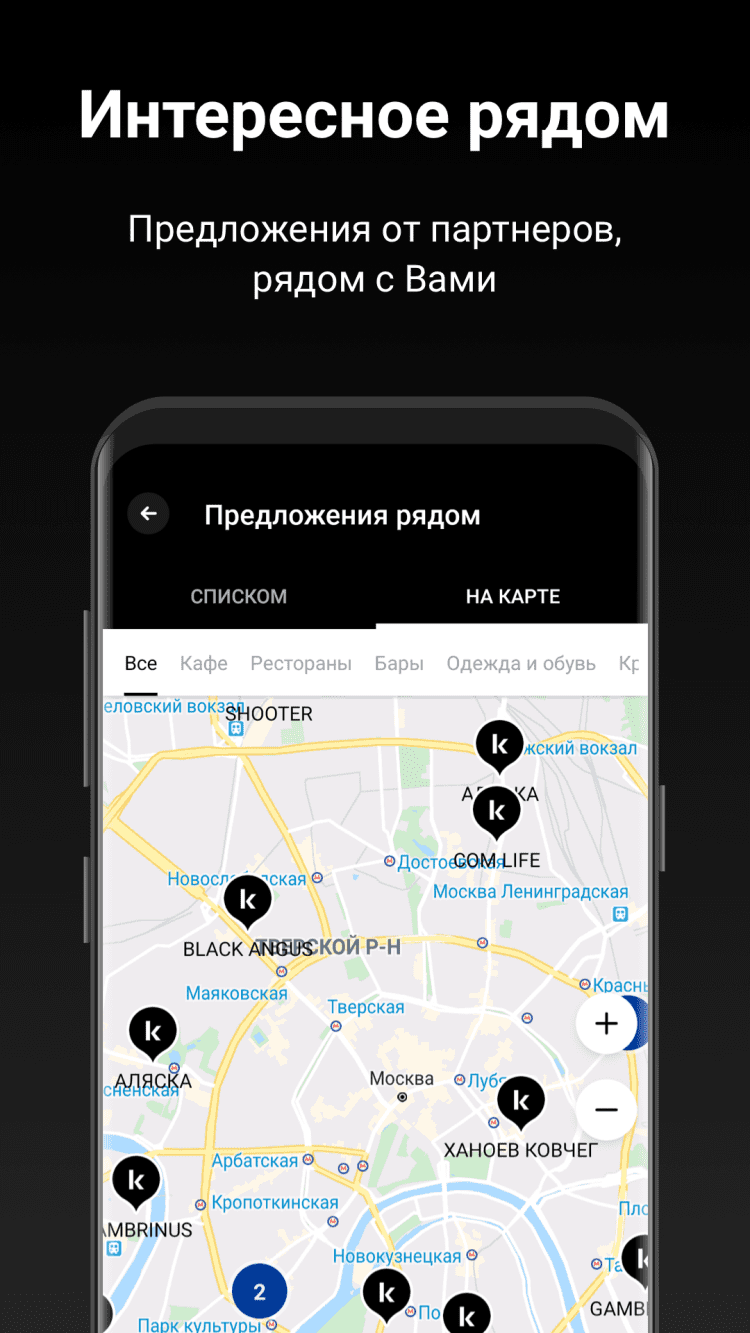 - возможность быстро находить ближайшие предложения от партнеров, где можно накопить и списать бонусы;