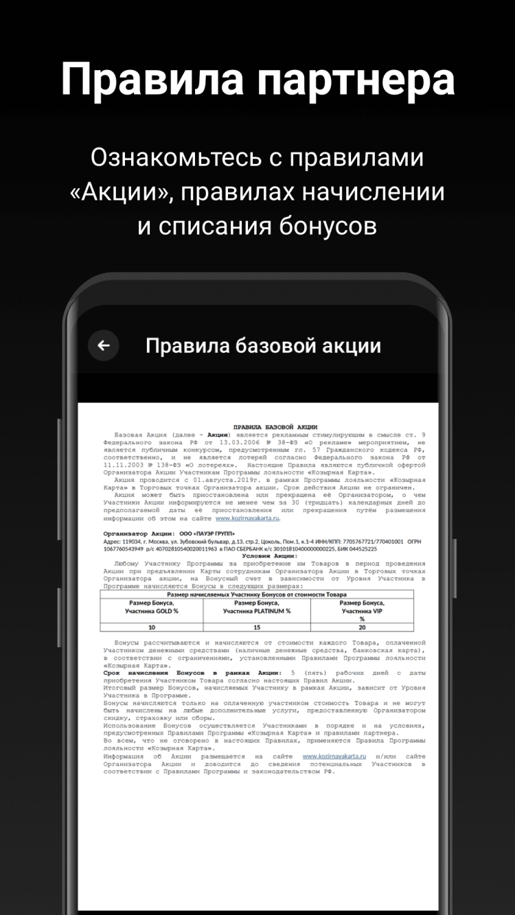 - удобный интерфейс с информацией о балансе, истории бонусных операций и персональных предложениях.