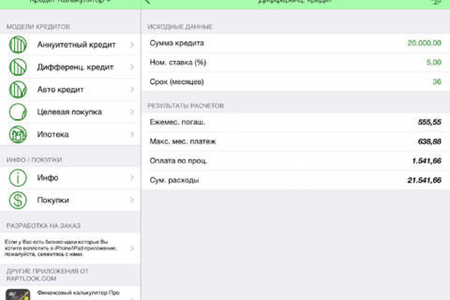 Кредитный Калькулятор + Это приложение позволит не просто расчитать какой-то отдельный тип кредита, но ознакомиться с наиболее популярными типами кредитования доступными во всем мире.