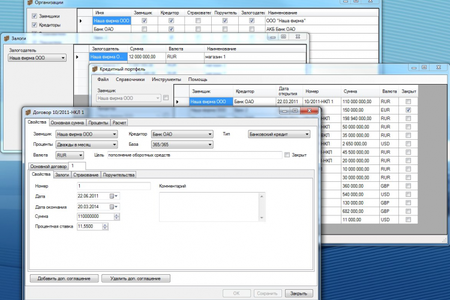 Кредитный портфель Программа предназначена для ведения кредитного портфеля организации и планирования (составления бюджета) по расходам на заемные средства и движения денежных средств: