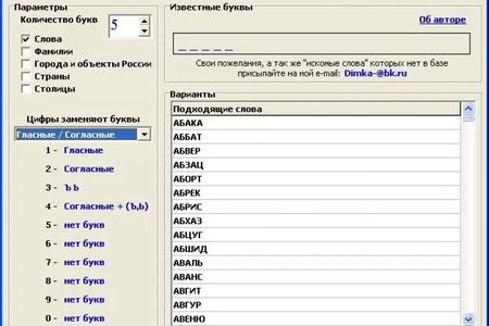 Вписывайте известные буквы или цифры в специальное поле программы,а в ответ Вы получаете варианты слов! База программы содержит 51701 слово, которая будет и далее дополняться новыми словами. Если слова нет в базе - не беда, Вы всегда можете прислать это слово автору на [email protected] и он включит его в список! Так же имеется возможность поблагодарить автора отправивь ему ОБЫЧНУЮ СМС(По стоимости тарифа вашего региона). От автора: Предлогаю вам применять эту программу для игры сканворды Вконтакте, я сам постоянно ей пользуюсь и хочу что бы моя программа стала популярной. Спасибо Вам за использование моей программы, присылайте СМС я буду рад!!!