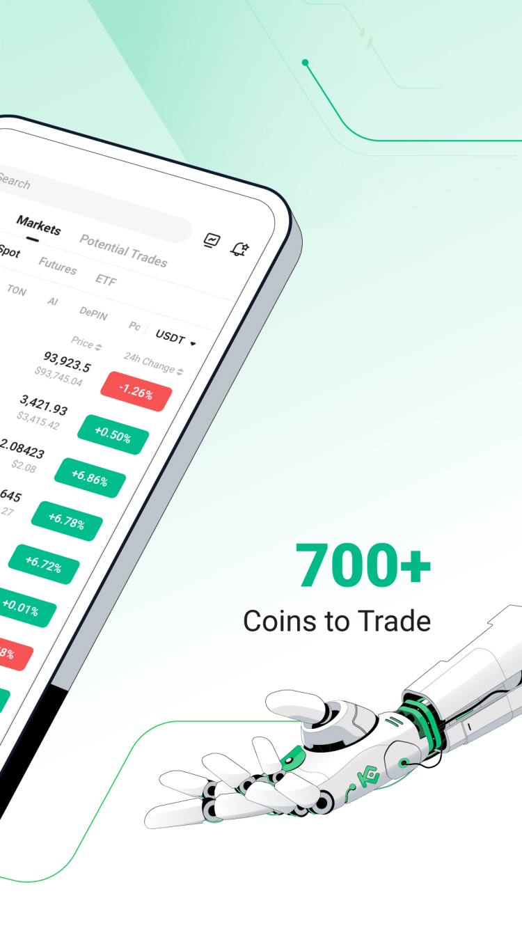 KuCoin — это ваш помощник для беспроблемной торговли, инвестирования и управления вашими цифровыми активами на ходу. Благодаря интуитивно понятному интерфейсу и набору мощных, но простых в использовании инструментов, это приложение становится доступным как опытным трейдерам, так и новичкам в мире криптовалют.