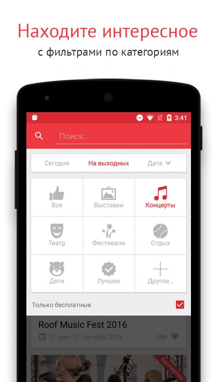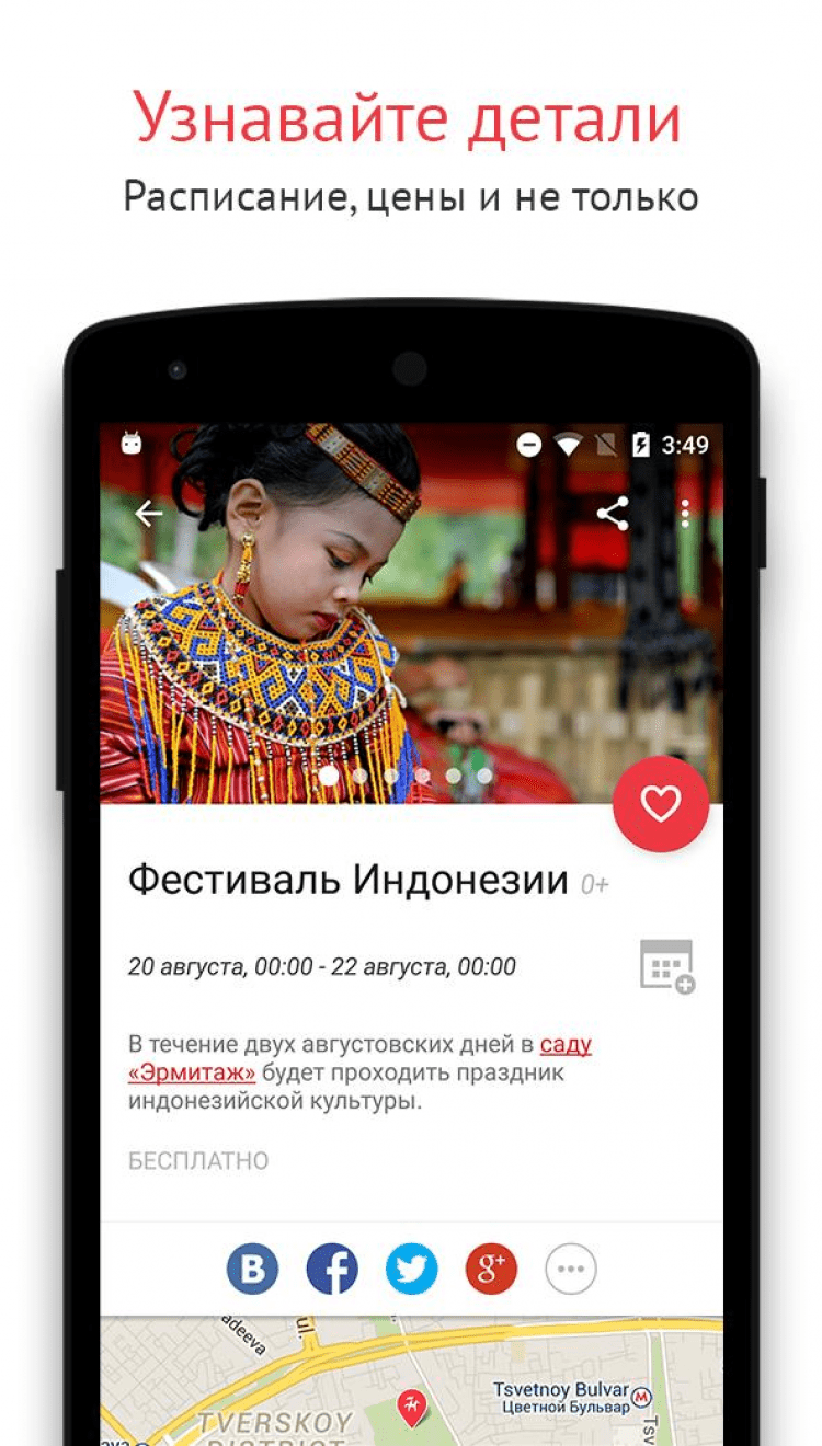 KudaGo - Афиша нового формата Эта программа позволит вам просматривать информацию о всевозможных развлекательных событиях вашего города. Находите самые интересные выставки, кинопоказы, театральные постановки, вечера настольных игр, концерты и выберите, где Вы хотите провести свой вечер. Помимо интересных событий, программа поможет найти рестораны, парки, бары, клубы, театры, достопримечательности и даже магазины, которые вам будет интересно посетить, а так же найти их местоположение на карте, что поможет проложить удобный маршрут. Понравившимися вам событиями и местами вы сможете поделиться с друзьями через ВКонтакте, Facebook, Google+ или Twitter.