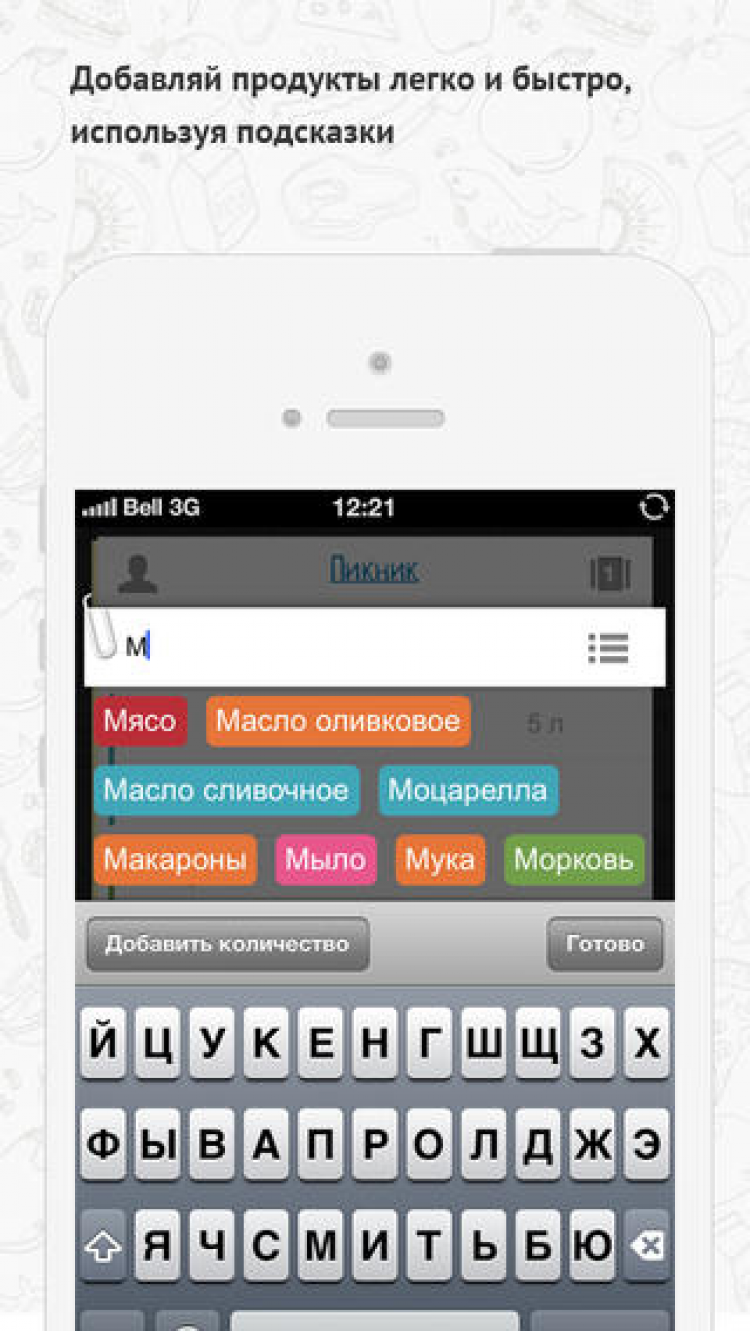 — быстрое добавление элементов списка с удобным вводом наименования покупки и требуемого количества