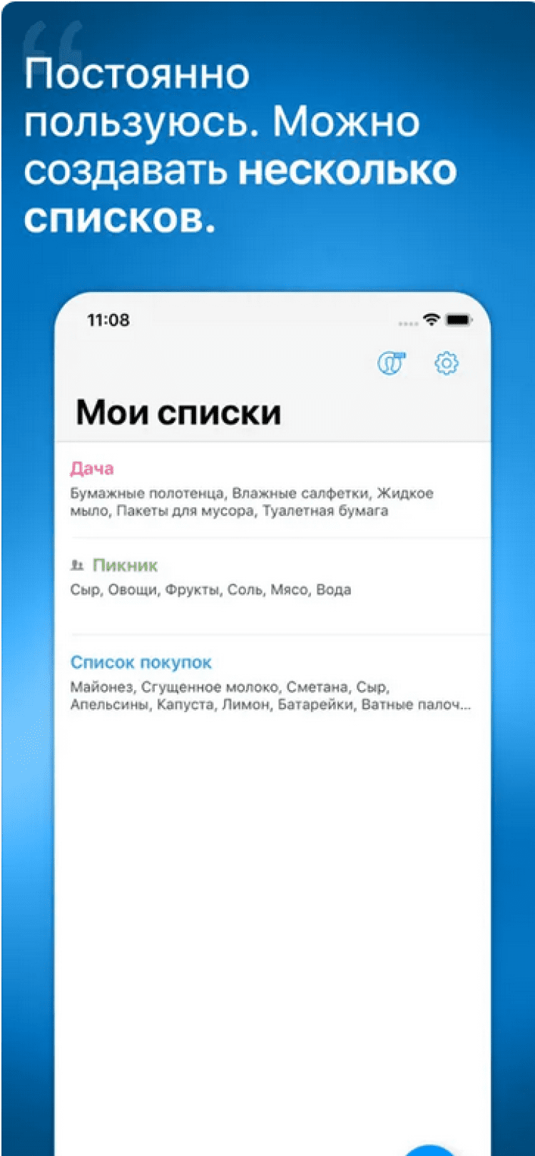 Обратите внимание, что перед вами бесплатная версия приложения. После приобретения полной версии, вы сможете создавать больше одного списка покупок, синхронизировать их с другими вашими устройствами в реальном времени, а так же отправлять их по электронной почте, в текстовом сообщении, либо отправлять их на печать.
