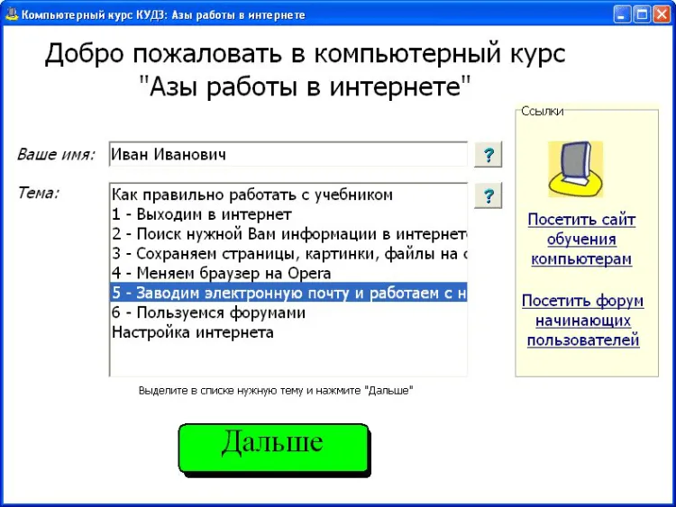 - Настройка интернета Больше Вам не придется спрашивать подсказок у Ваших родственников и друзей, как отправить электронную почту и как зарегистрироваться на форуме.